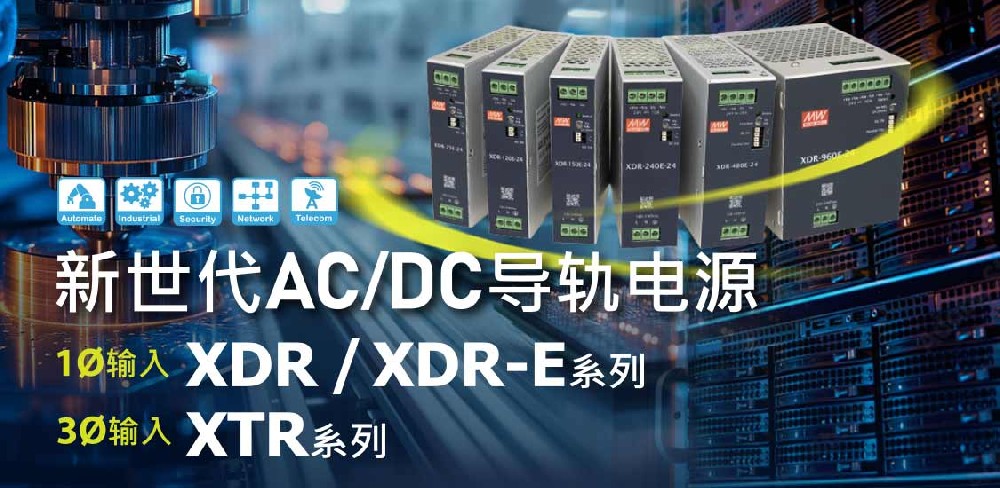• 明緯重磅推出全新世代AC-DC導(dǎo)軌電源XDR/XDR-E/XTR三大系列,依1?及3? 不同的系統(tǒng)及市場(chǎng)應(yīng)用需求,1?輸入規(guī)劃「高階旗艦款XDR 系列」和「性?xún)r(jià)兼?zhèn)淇頧DR-E系列」兩個(gè)檔次;3? 輸入XTR系列一個(gè)檔次,提供更超值選擇,可充分滿(mǎn)足工業(yè)自動(dòng)化、網(wǎng)路交換機(jī)、或半導(dǎo)體制程設(shè)備等行業(yè)需求。