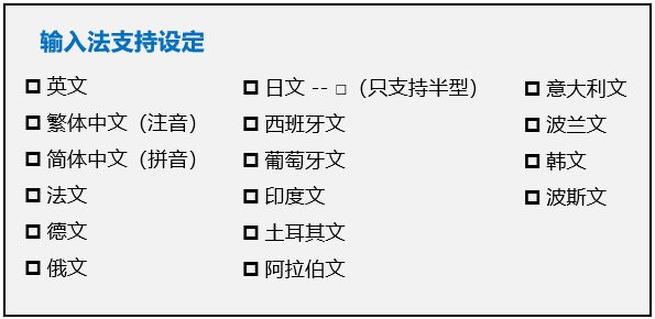 | 軟件功能 | 多語輸入、多媒體 | ||||