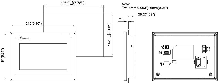 | 外觀尺寸 (W x H x D,mm) | 開孔尺寸 (W x H,mm) | |