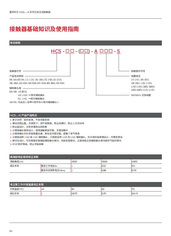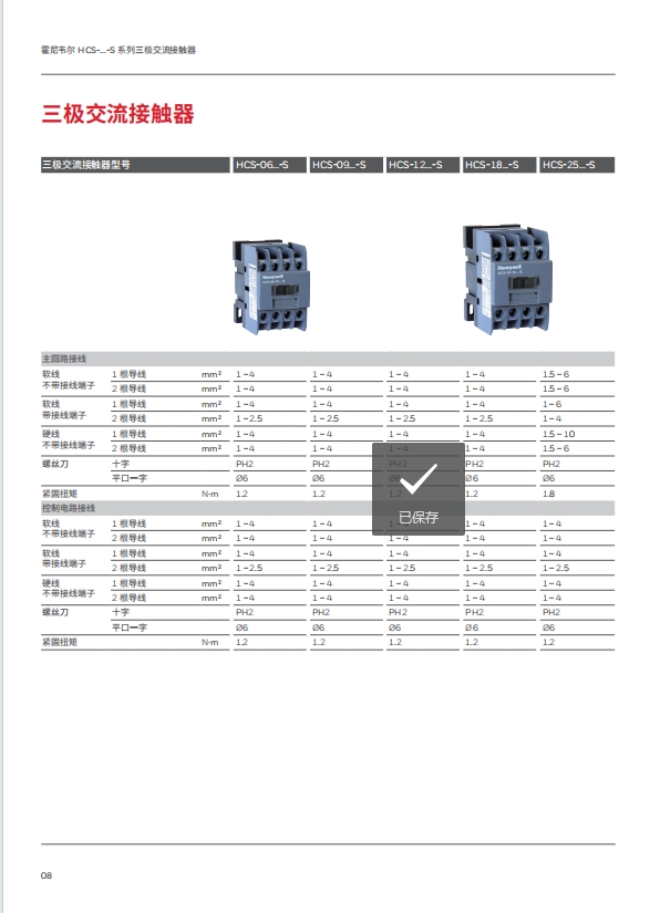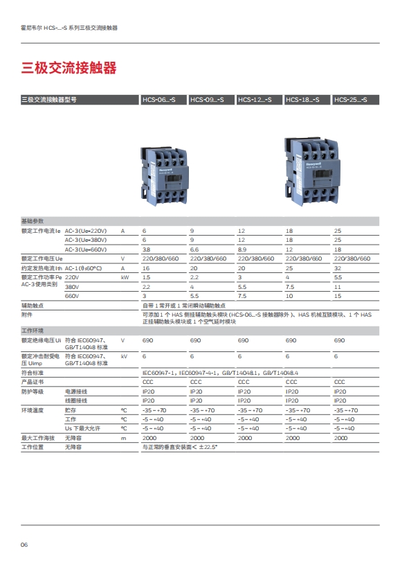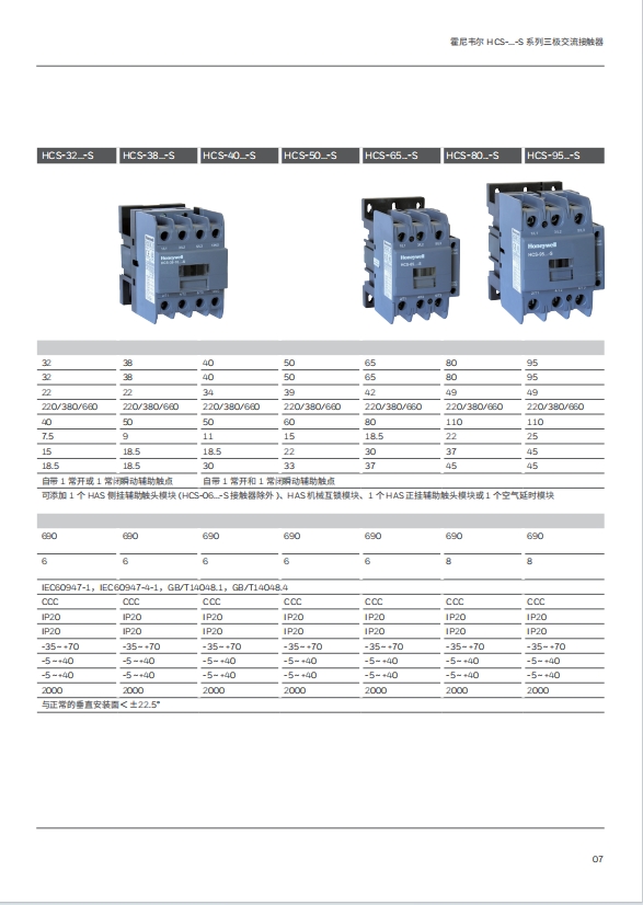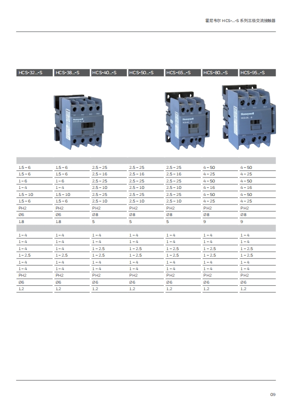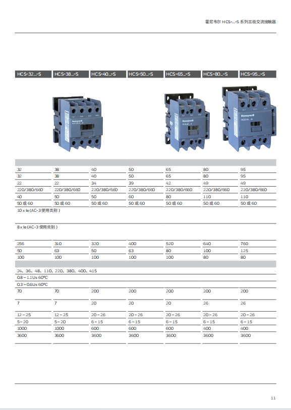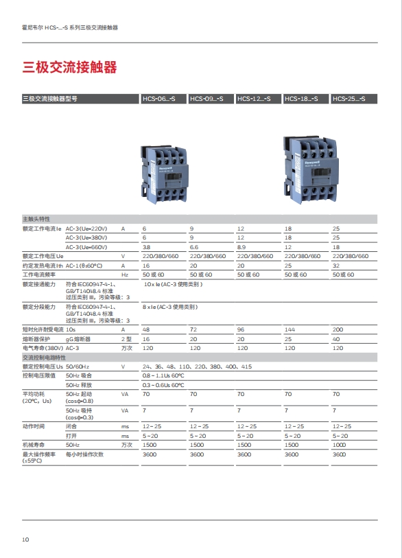 霍尼韋爾 HCS-...-S 系列三極交流接觸器