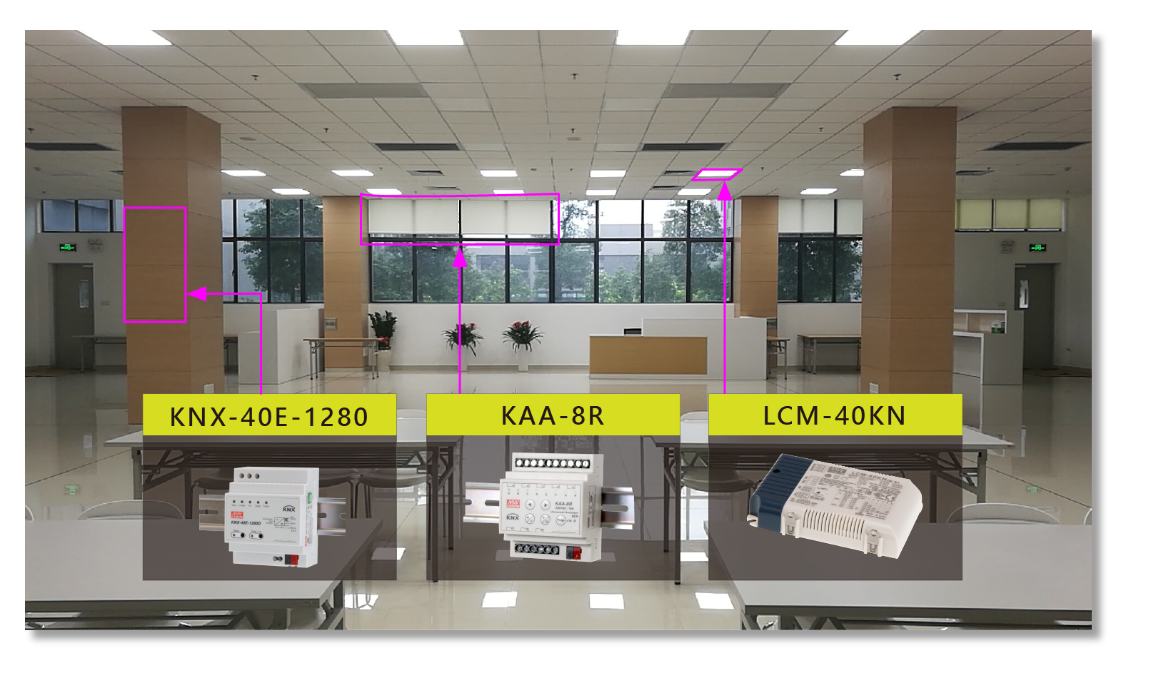 80盞LED燈:LCM-40KN6套電動窗簾:KAA-8R4套燈箱背光:KAA-4R4V電 力 監(jiān) 測:PMU-01KNX 總線電源:KNX-40E-1280KNX LCD Panel:思悅智能