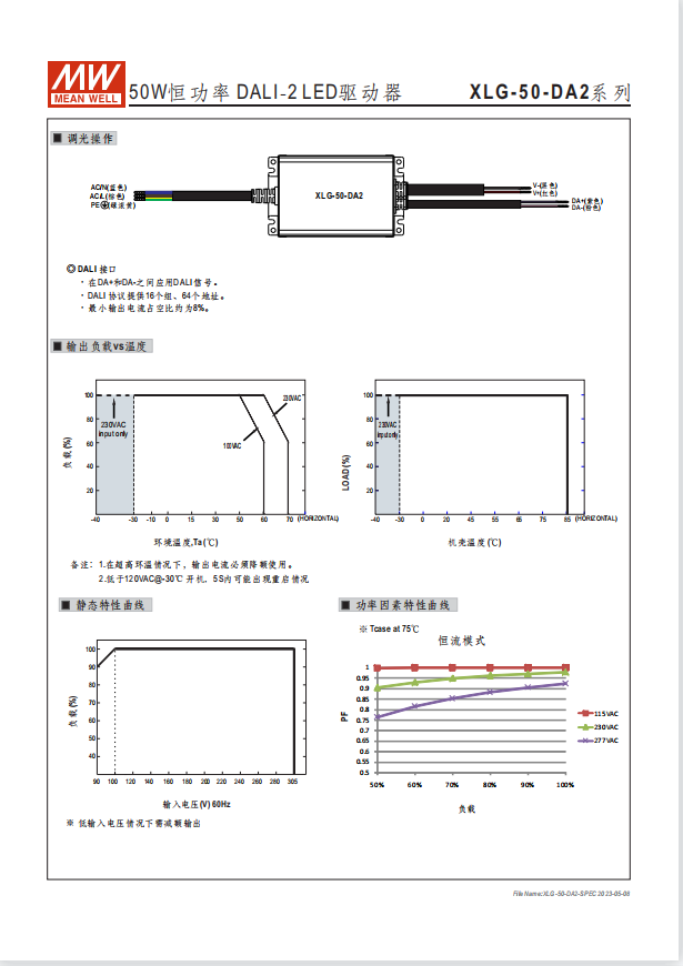 瓦數(shù): 20W~320W 功能特性 寬電壓輸入范圍100~305VAC(XLG-20為90~305VAC)