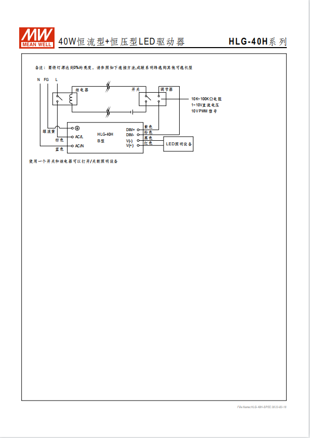 HLG-40H / HLG-60H / HLG-80H / HLG-100H / HLG-120H / HLG-150H / HLG-185H / HLG-240H / HLG-320H / HLG-480H / HLG-600H