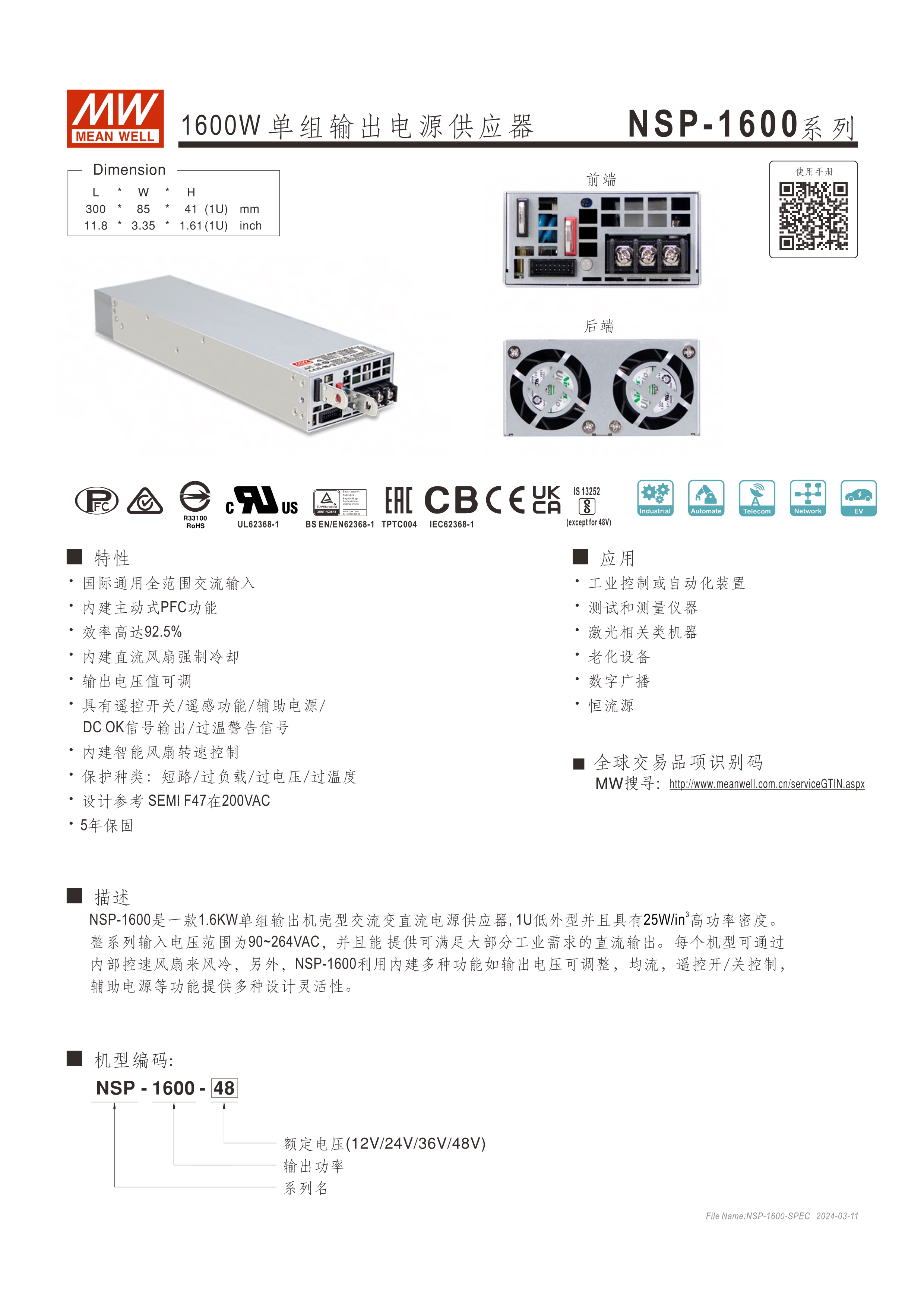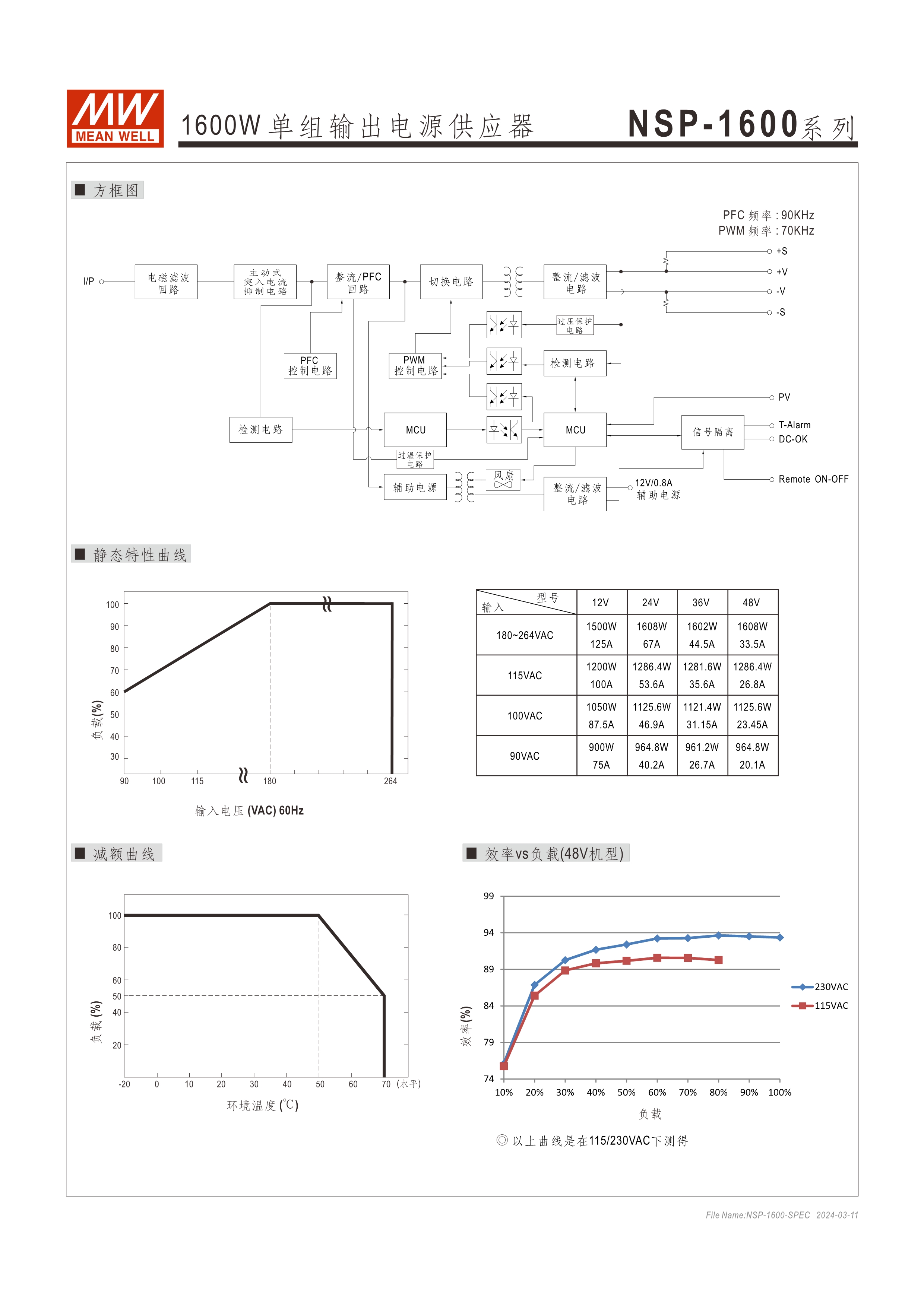 電氣規(guī)格及安規(guī)認證皆參照RSP或DPU系列,客戶可直接選用取代,立即導(dǎo)入使用 環(huán)境友善制程與用料 全范圍電壓輸入 效率最高可達94.5% 內(nèi)建PV功能 設(shè)計符合SEMI F47 @200Vac