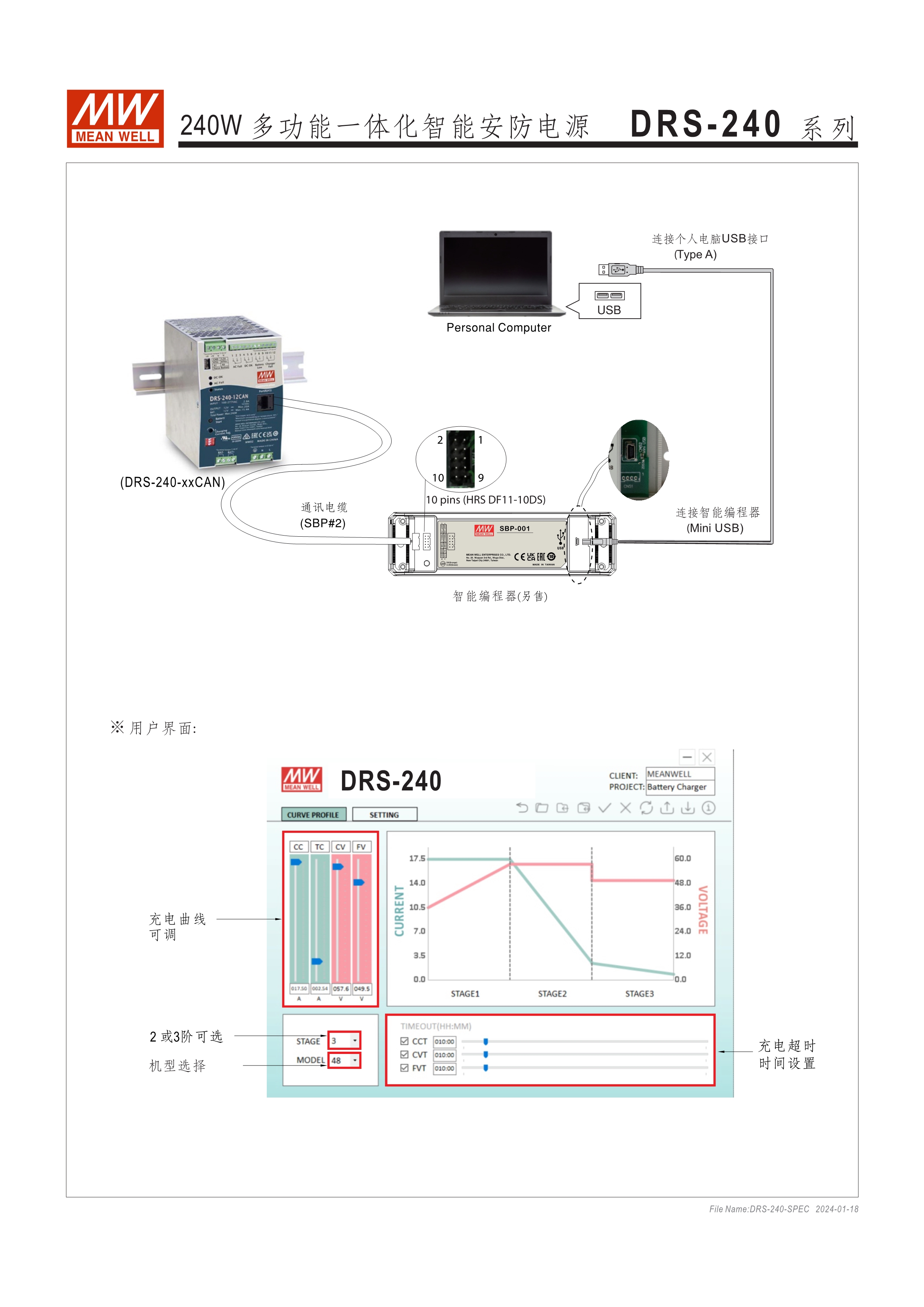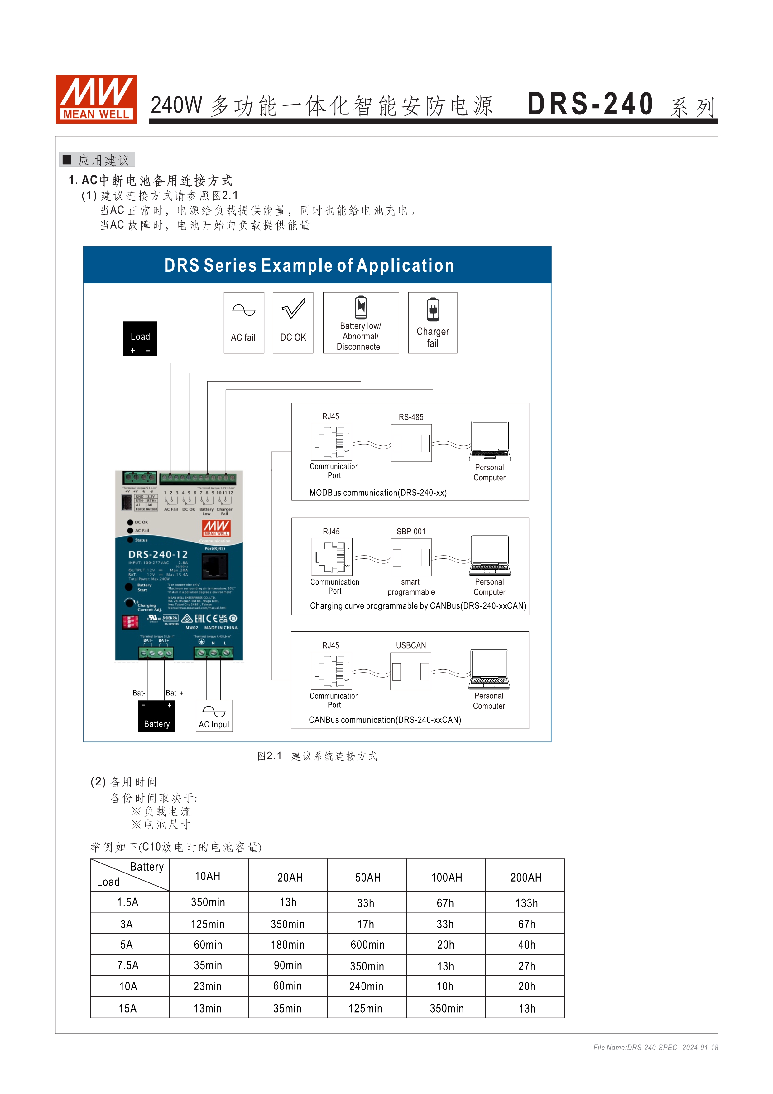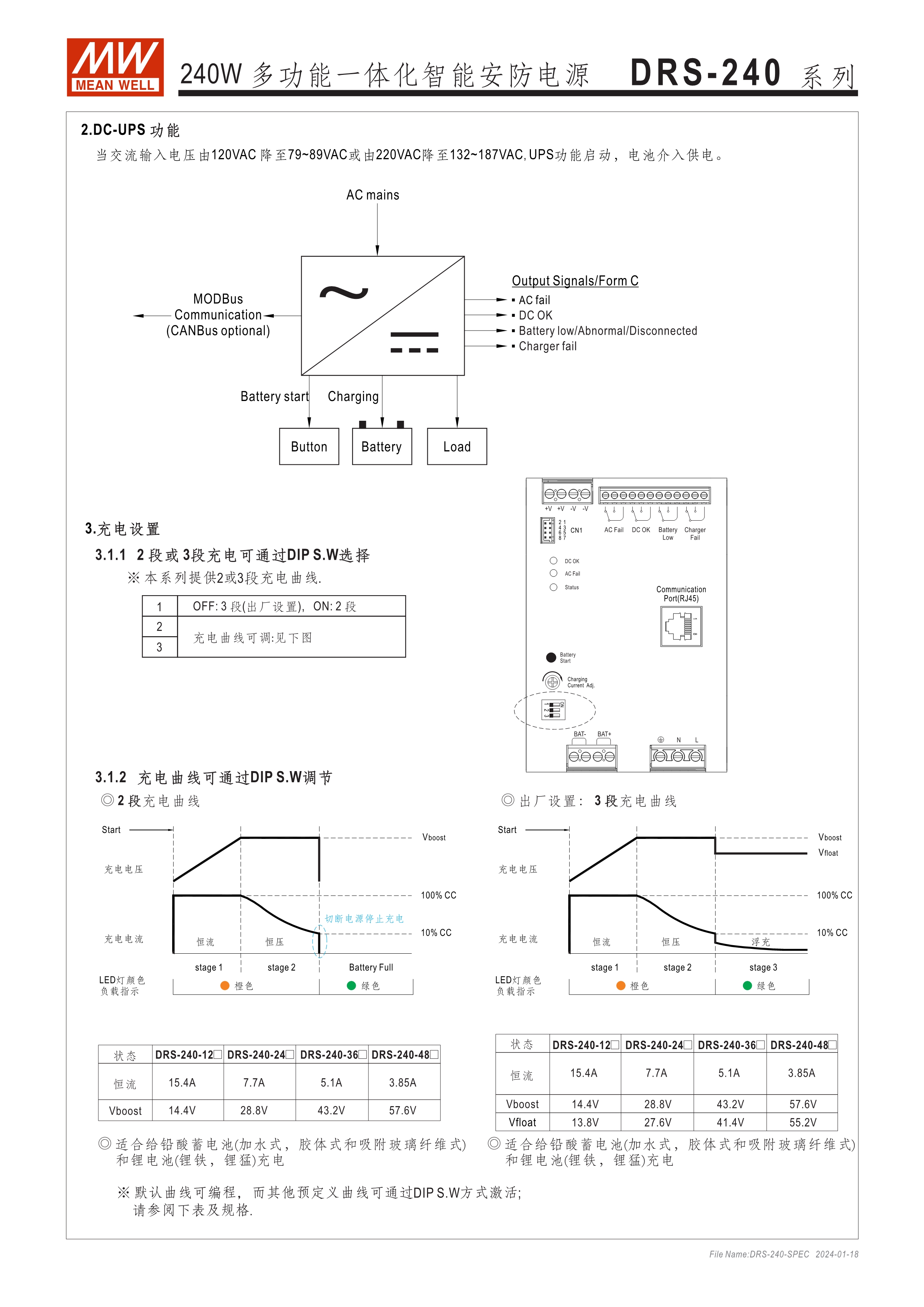 通用輸入90~305VAC(可使用277VAC) 具備電源供應器、DC不斷電、電池充電器和狀態(tài)監(jiān)控多合一功能 訊號警示設計符合UL2524, NFPA 1221, BS EN/EN54-4和GB17945 交流故障的Form C繼電器接點和顯示電池不足、充電器故障及DC-OK的LED指示燈 內建MODBus通訊協定,并可選CANBus 可搭配SBP-001編程器調整充電曲線