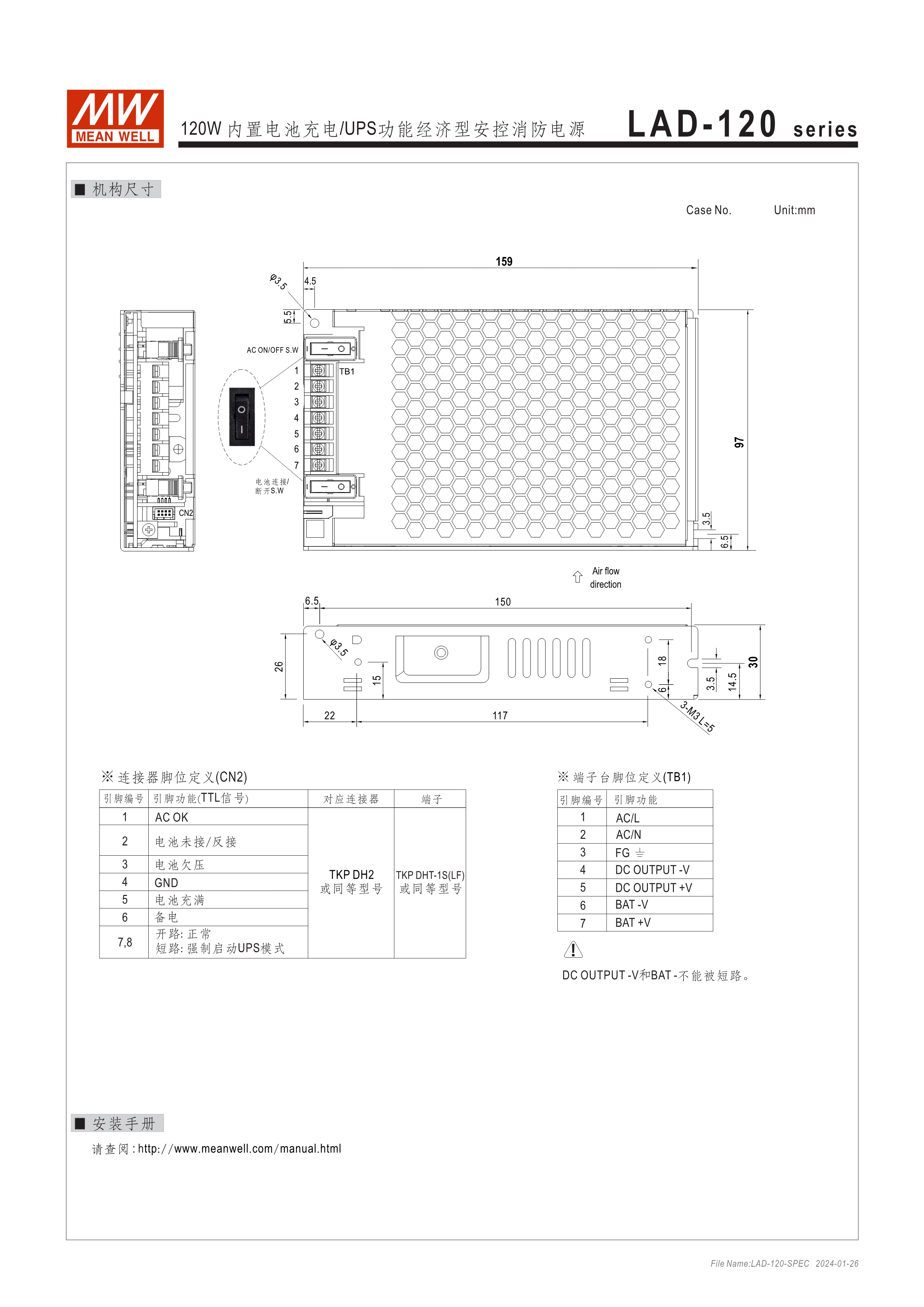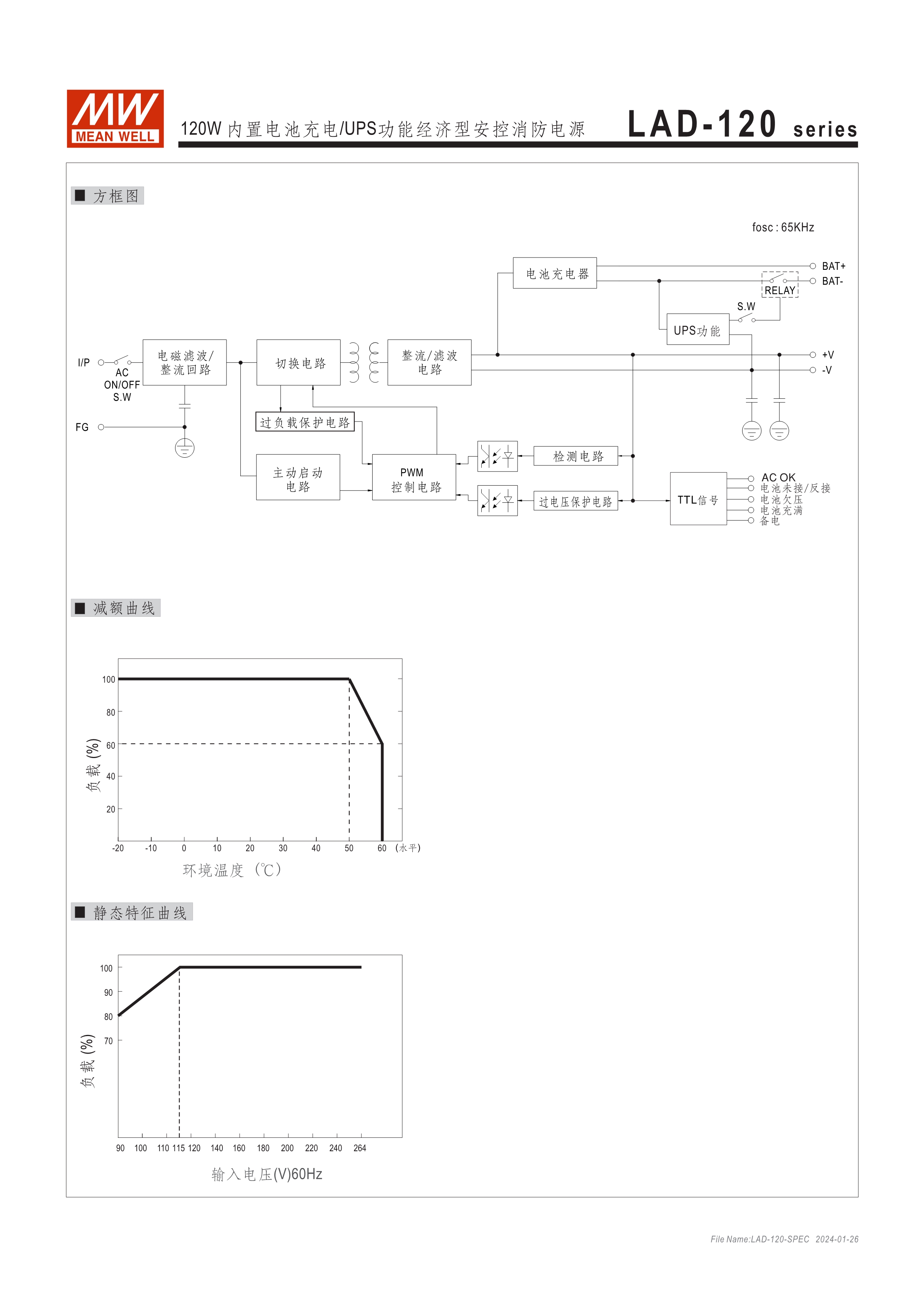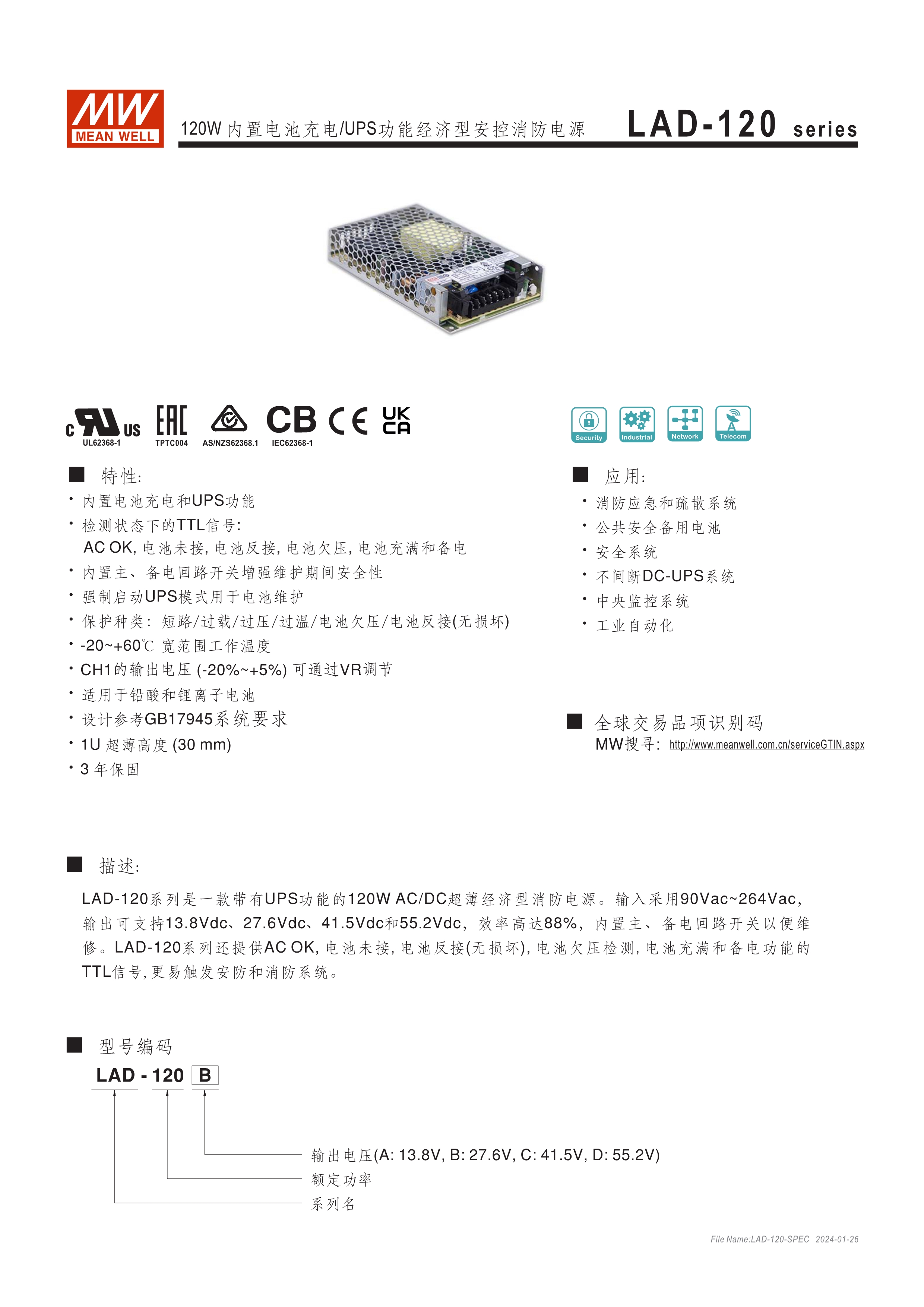 AD/ADD系列具UPS功能(需外接電池) LAD系列具UART通訊功能,可透過主、備電迴路開關(guān)控制,並符合GB 17945-2010安全規(guī)範(fàn) 適合用于安全監(jiān)控設(shè)備或各式電池備援系統(tǒng)