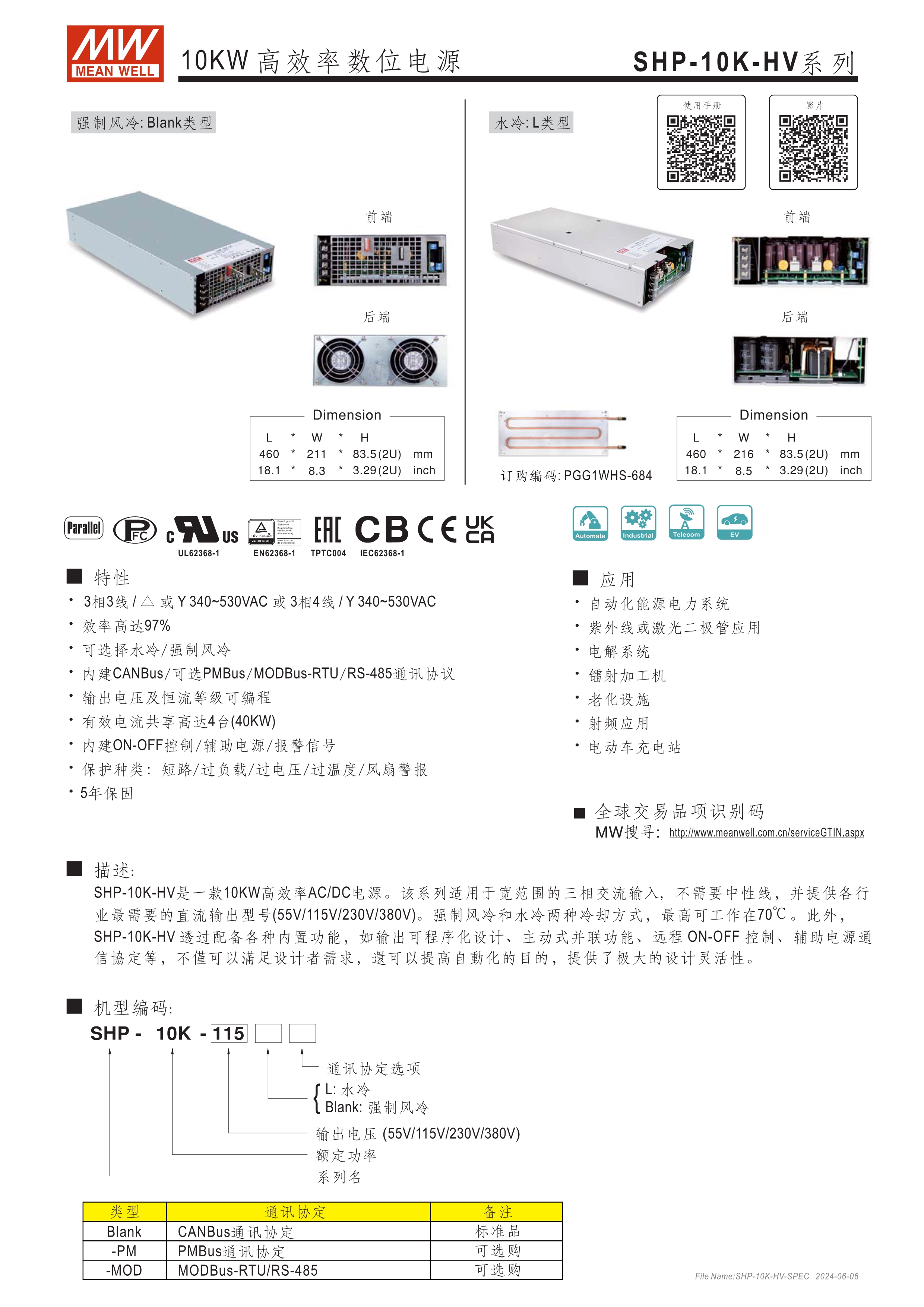 三相三線無中性線/340~530VAC寬輸入范圍 可選擇水冷/強(qiáng)制風(fēng)冷 內(nèi)建CANBus/可選PMBus通訊協(xié)議/MODBus-RTU/RS-485 輸出電壓及恒流等級可編程 有效電流共享高達(dá)4臺 內(nèi)建ONOFF控制/輔助電源/報(bào)警信號 5年保固