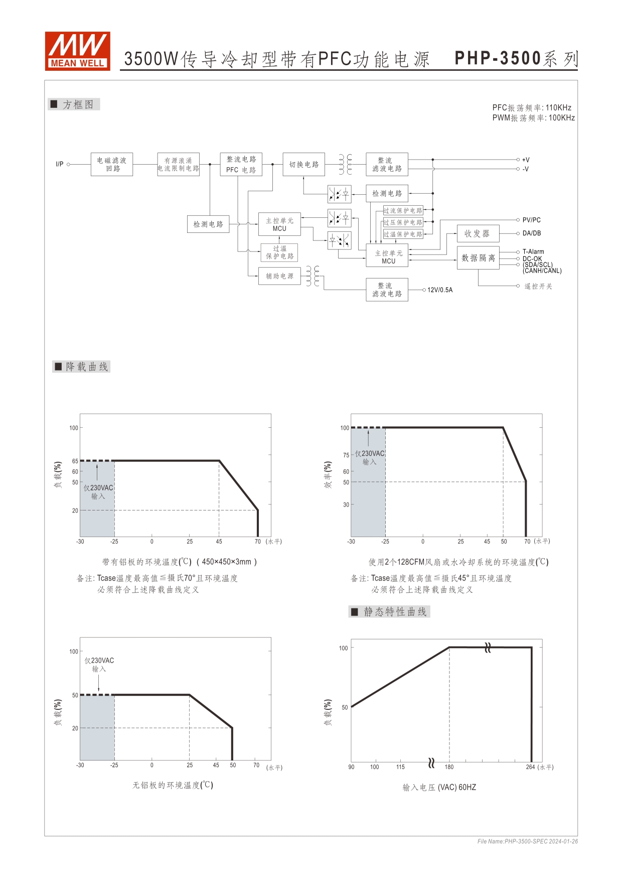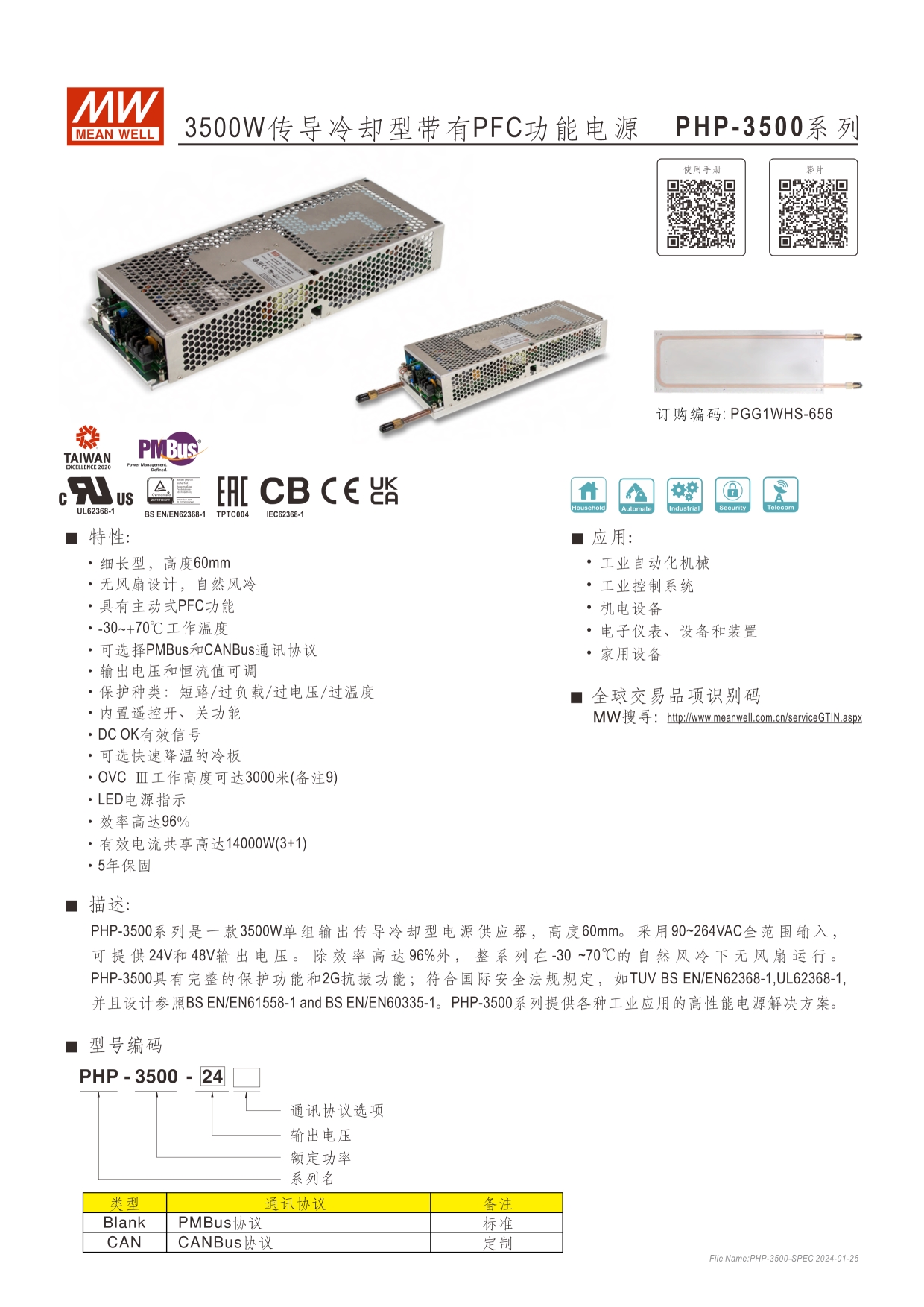 水冷散熱設(shè)計 可程序化輸出功能: 輸出電壓與輸出電流恒流點可調(diào)整 支持PMBus通訊協(xié)議 (可選配CANBus協(xié)議) 支持輸出并聯(lián)功能 HV款式為高壓輸出機(jī)型 主動式均流設(shè)計,系統(tǒng)電力高可達(dá)14000W (3+1) 可選購水冷板,ordering no.: HS-656
