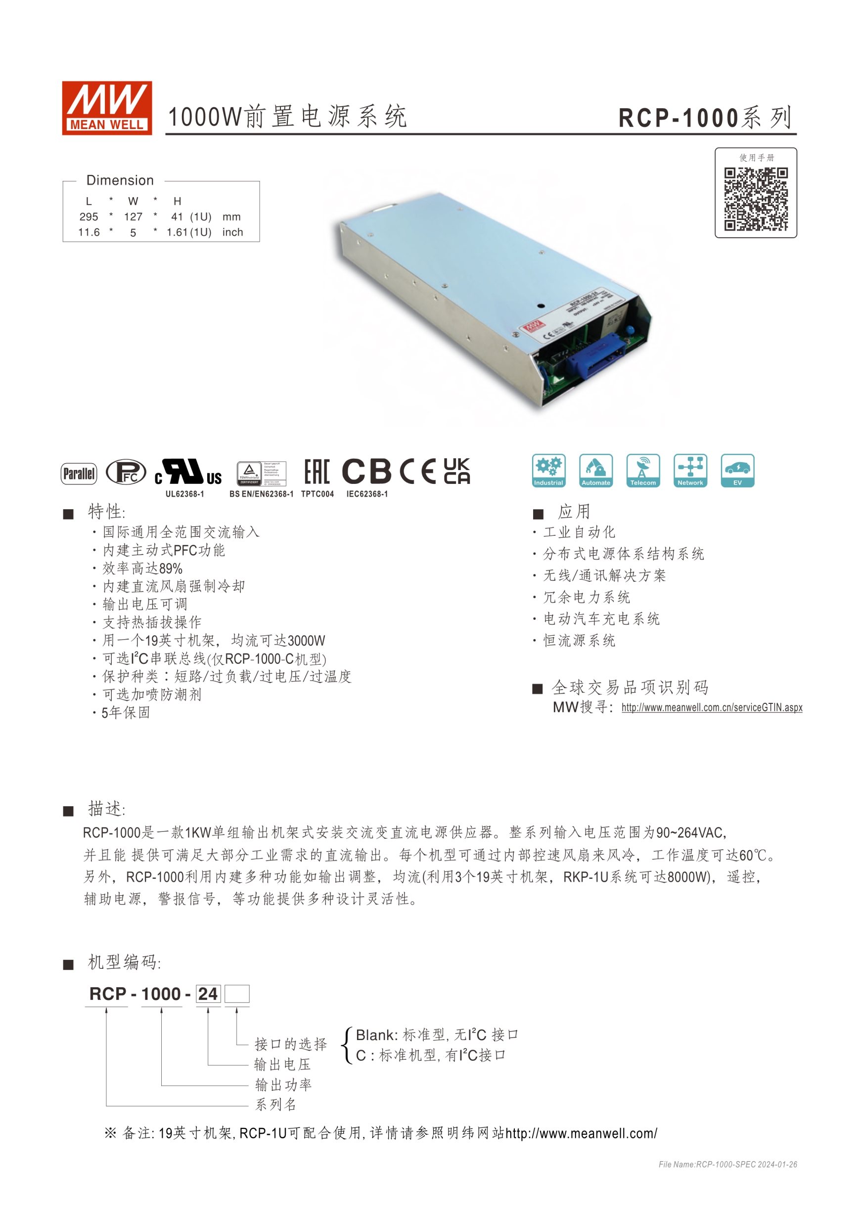 完整的機箱安裝前置式方案,含整流器與充電器 1U低高度 19吋機箱供選擇