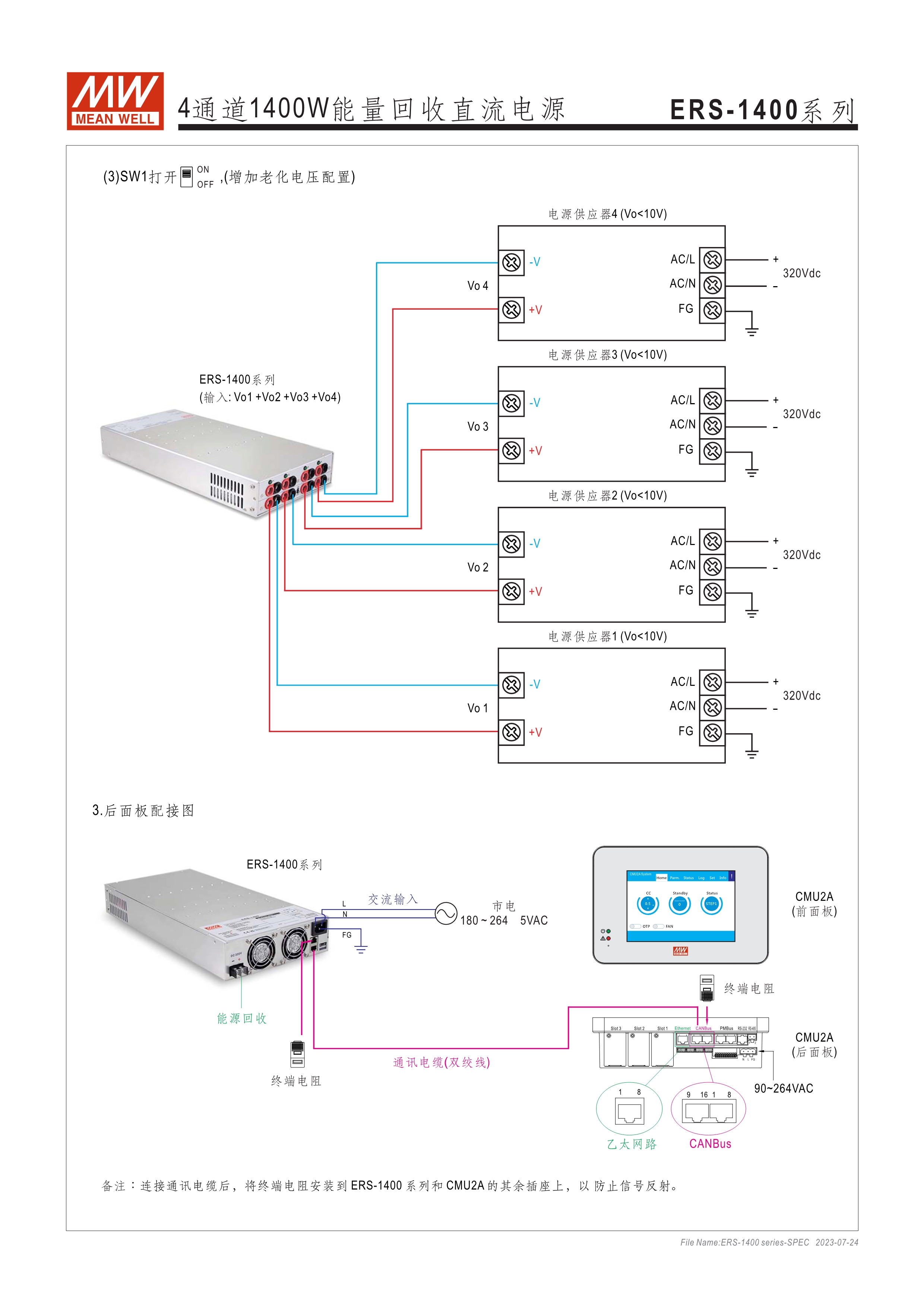 寬輸入電壓范圍10~60VDC/60~380VDC(視機(jī)型而定) 效率高達(dá)91% 靈活配置的模塊化設(shè)計(jì) 彈性的CC/CV/CP操作模式 通過CMU2A實(shí)現(xiàn)CAN總線協(xié)議遠(yuǎn)程控制和監(jiān)控控制 可連接最多64臺(tái)ERS-1400系列 保護(hù)功能: 過電壓、欠電壓、過熱、通信錯(cuò)誤 3年保固期