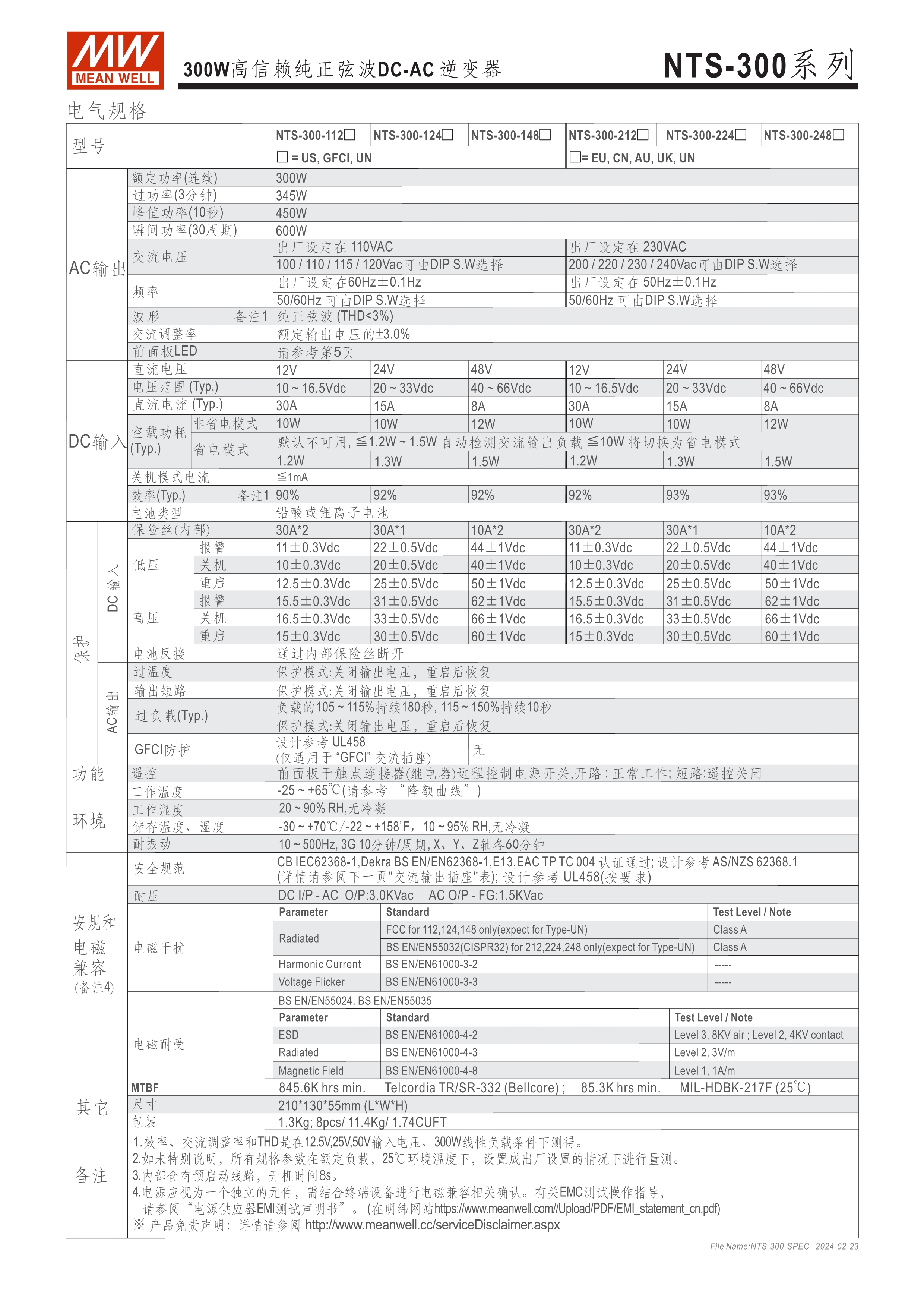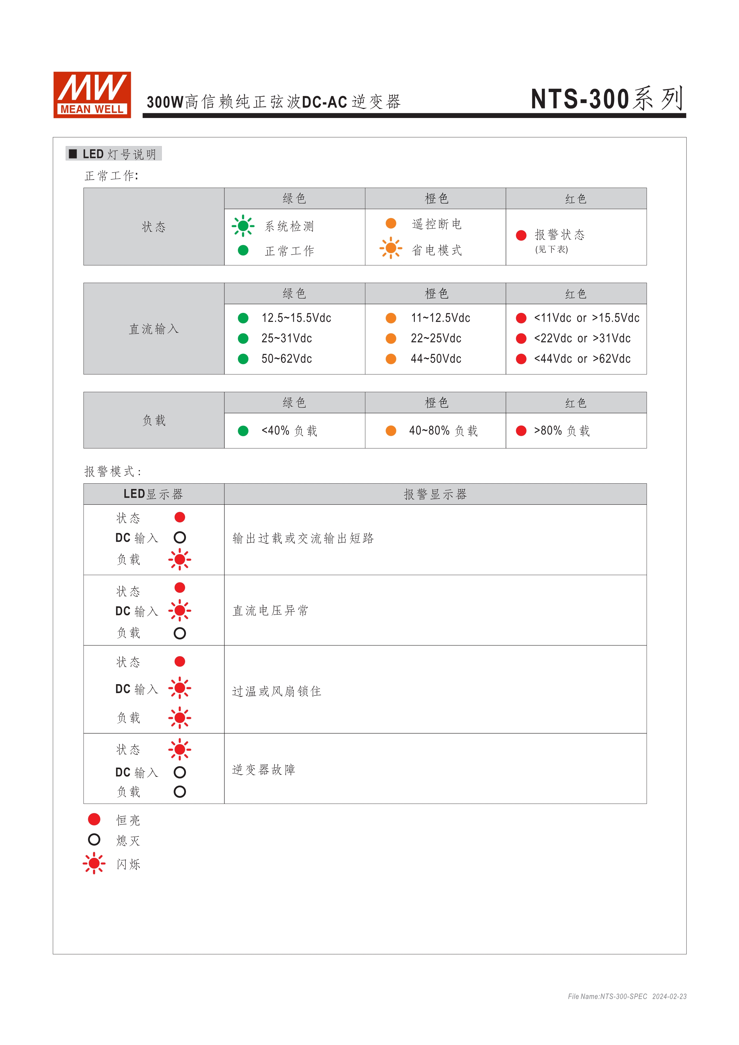 DC-AC純正弦波輸出 (THD<3%) 無風(fēng)扇設(shè)計,效率最高達93%,可自然風(fēng)冷散熱 內(nèi)建DIP S.W可彈性自調(diào)AC輸出電壓、頻率、節(jié)能模式 多重智能保護功能: DC輸入側(cè) - 極性反接、電壓過低、電壓過高保護 AC輸出側(cè) - 短路、超載、過熱保護