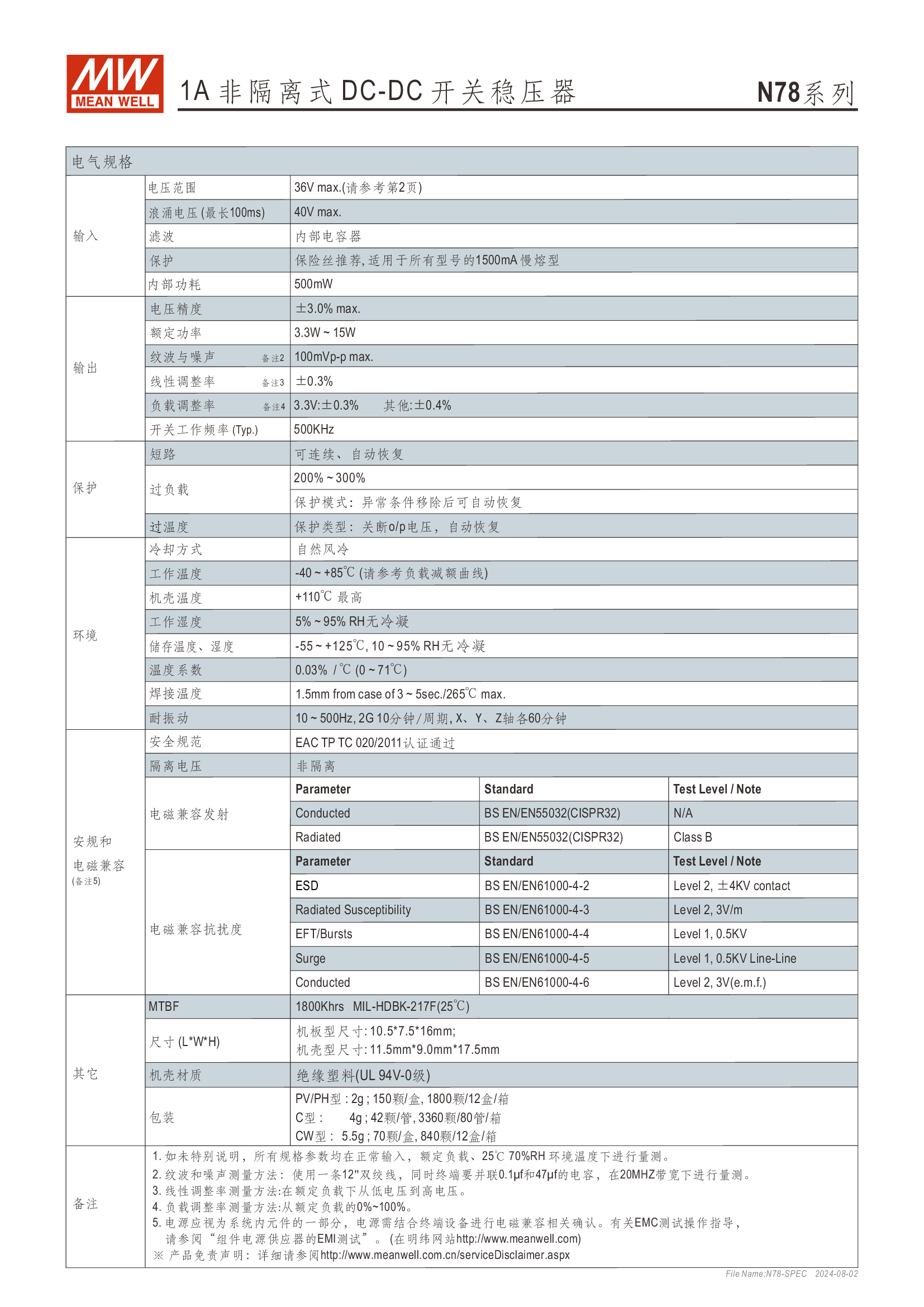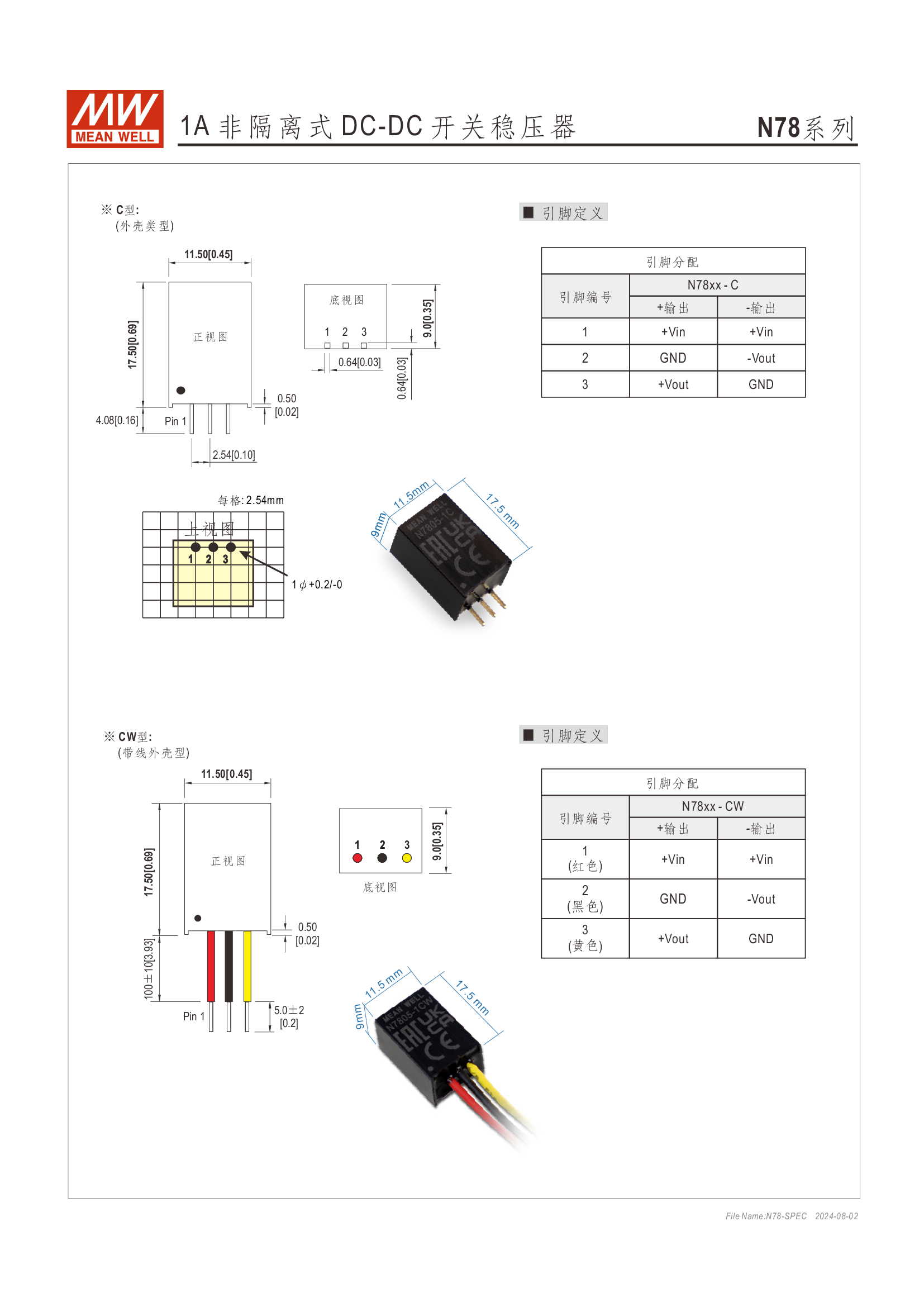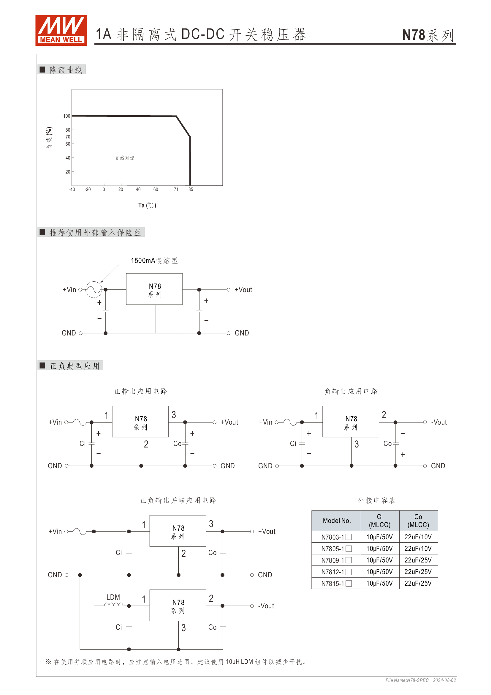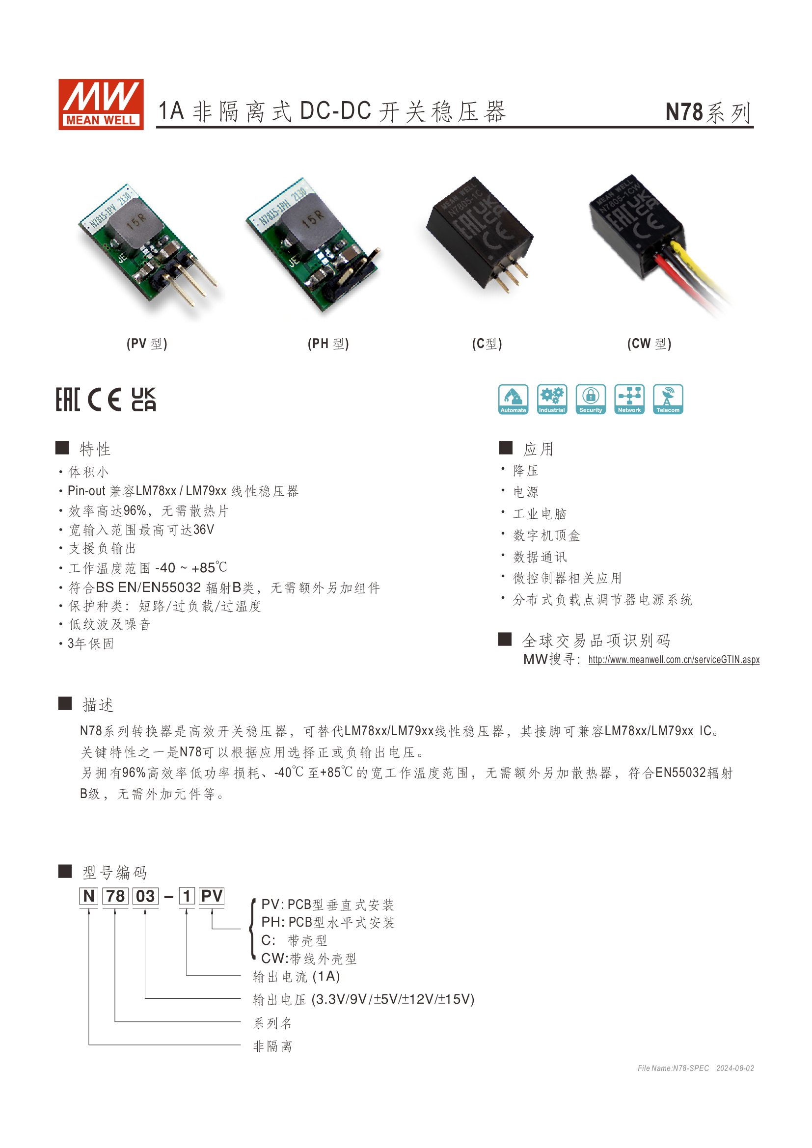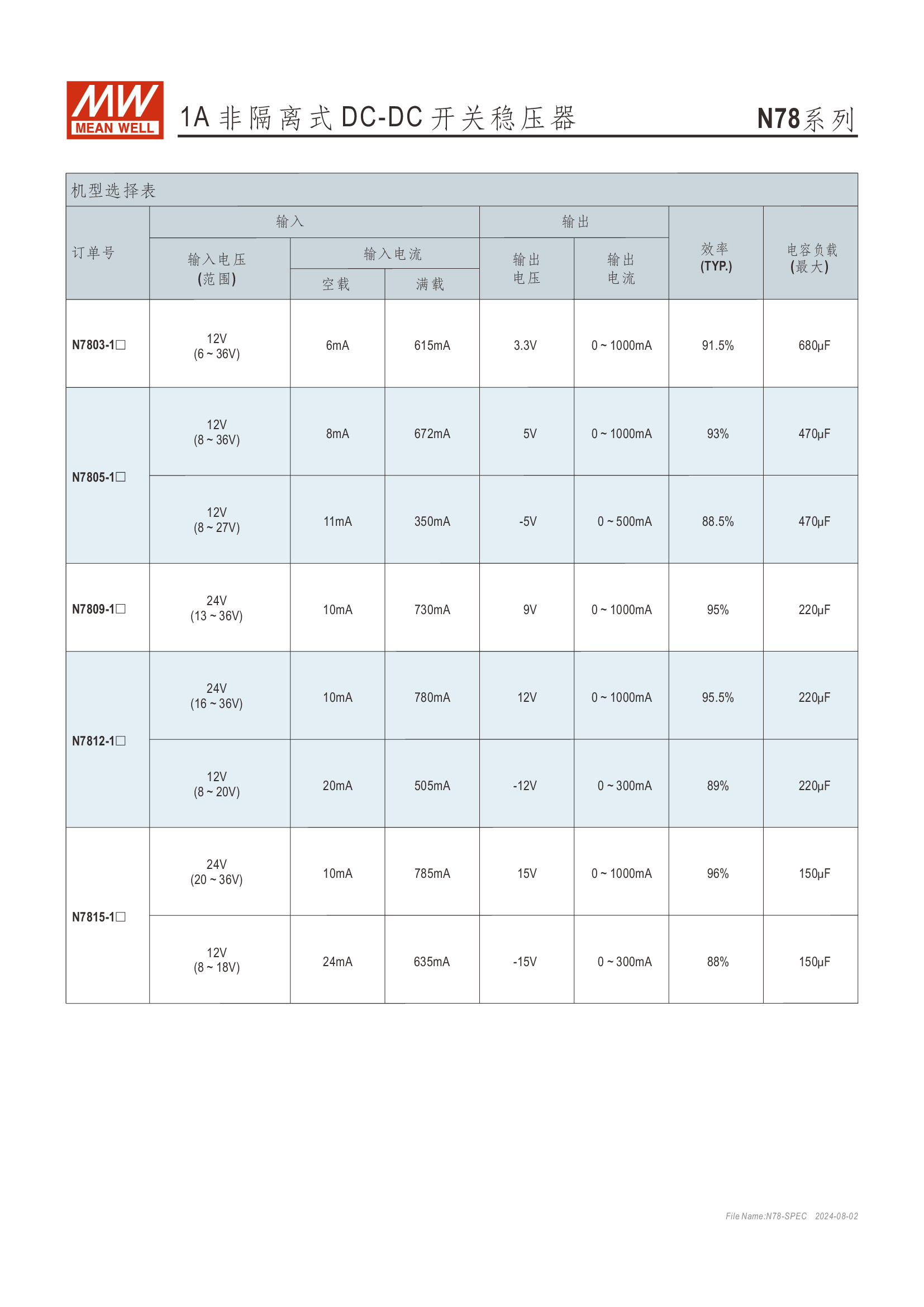 Pin-out 兼容 LM78xx/LM79xx 線性穩(wěn)壓器 效率高達(dá) 96%、無須散熱片 寬輸入范圍最高可達(dá) 36V 支援負(fù)輸出 工作溫度范圍:-40 ~ +85oC 符合 BS EN/EN55032 輻射 B 類、無需另加組件 保護(hù)種類:短路/過負(fù)載/過溫度 3 年保固