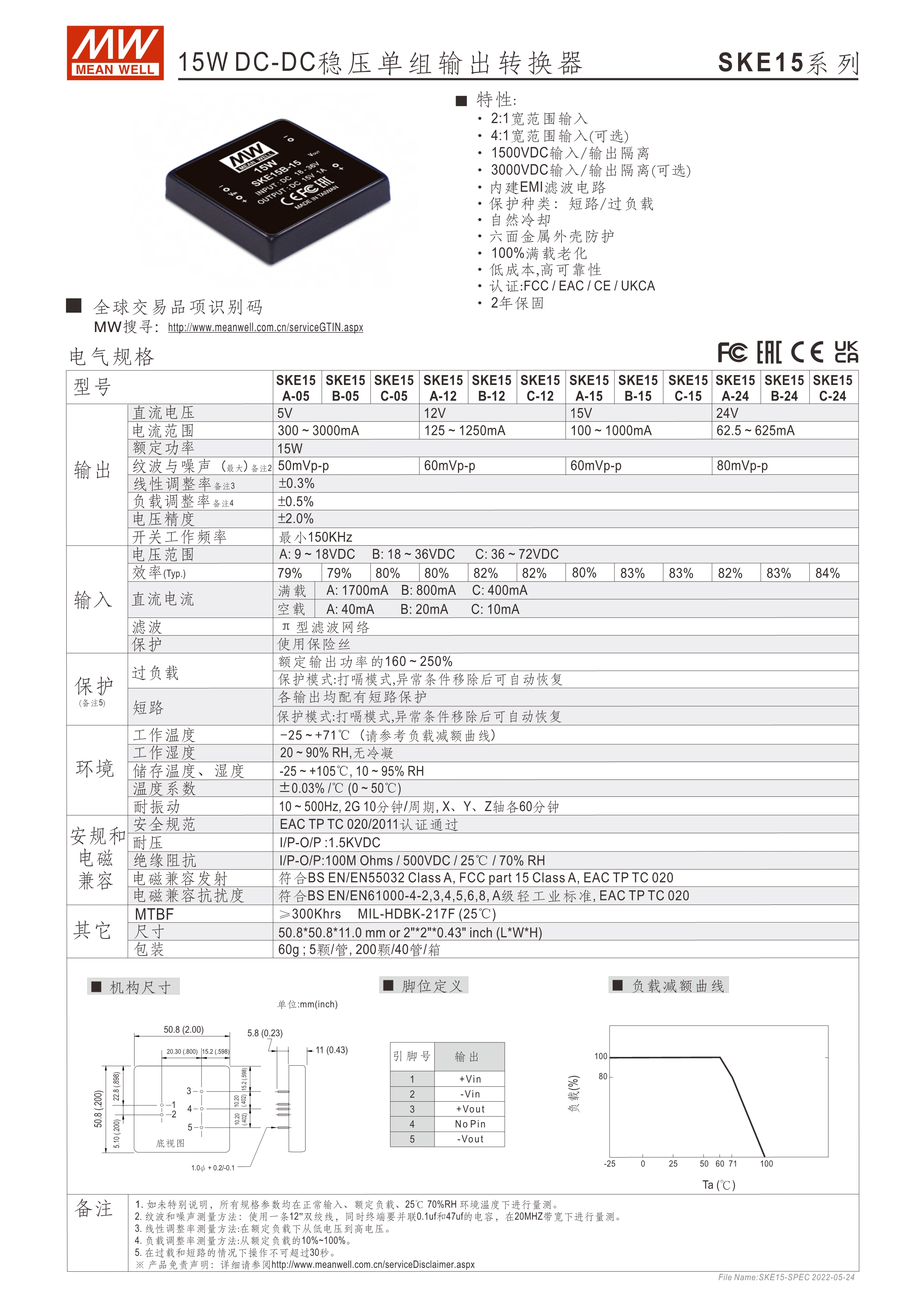 模塊型快選表 DIP封裝 寬輸入范圍—2:1 (標準品), 4:1 (選購品) 輸入/輸出隔離—1~1.5KVDC 擁有單組, 雙組及三組輸出機種